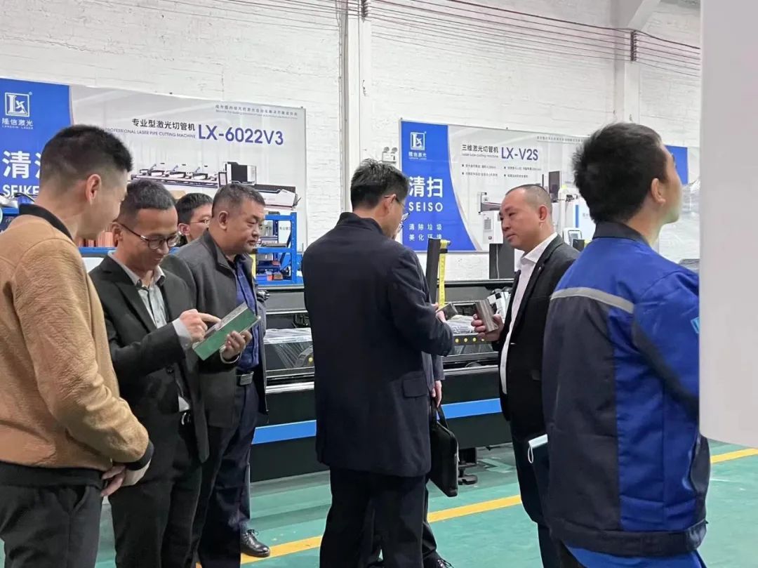 (王区长一行参观隆信激光三维激光切管机生产制造车间)