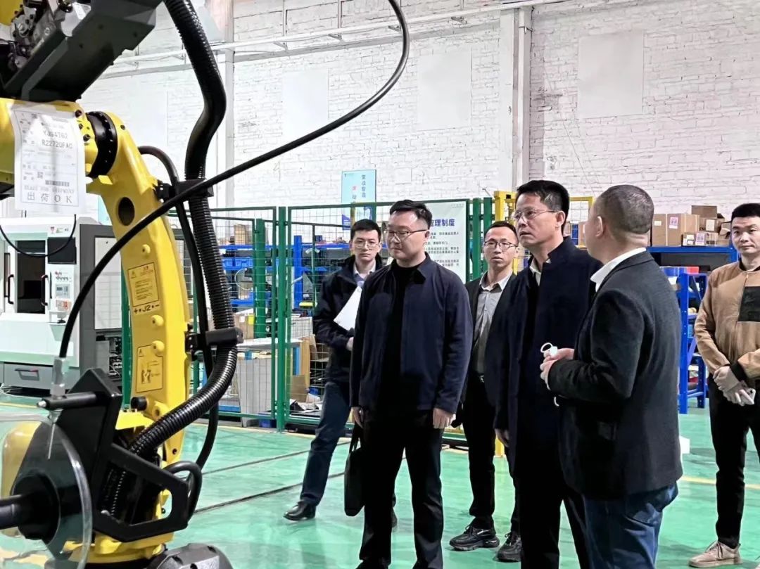 (王区长一行参观隆信激光-天权机器人生产制造车间)